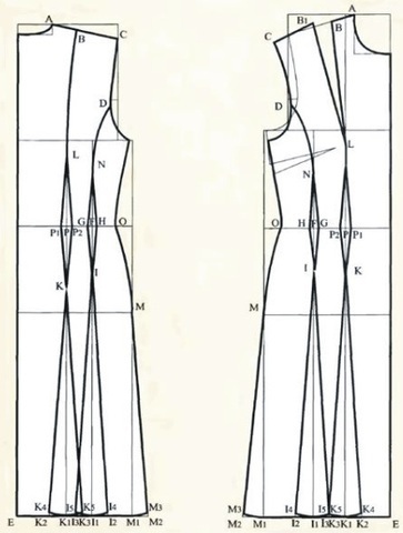 Для лучшего облегания фигуры рекомендуем построить вторую вытачку, уменьшив величину имеющейся первой вытачки на величину второй.